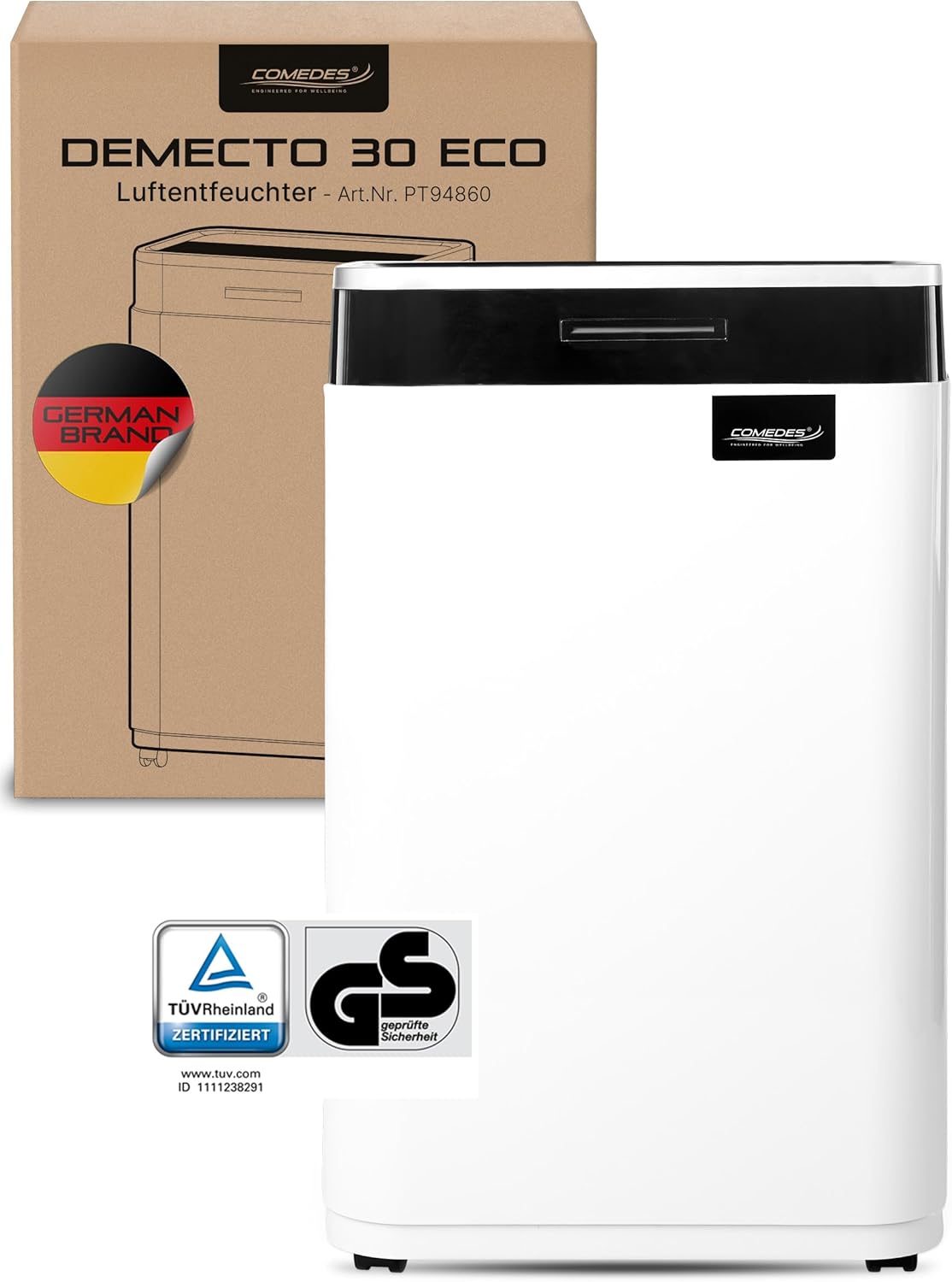 Comedes Demecto 30 eco - Luftentfeuchter Bautrockner max. 25 Liter 24h Geeignet für alle Räume und Keller bis zu 100m2 230m3