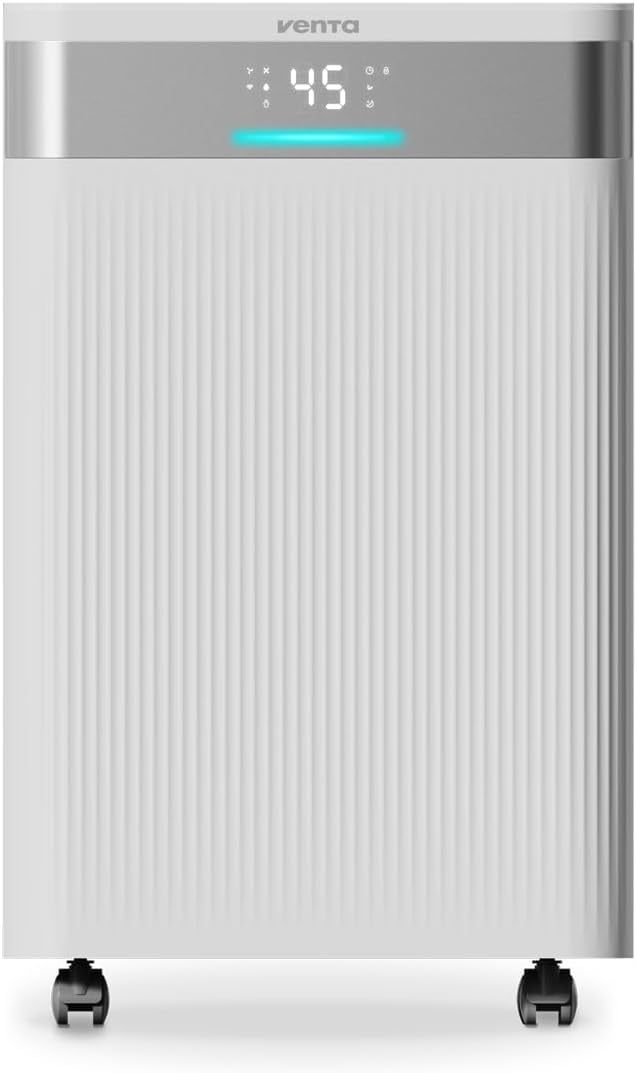 Venta AD100 Luftentfeuchter mit Ionisator - Funktion, 20L Tag, 4,5L Tank, für Räume bis 40m2 100m3, automatische Feuchtigkeitskontrolle, Wäschemodus, R290, Weiß